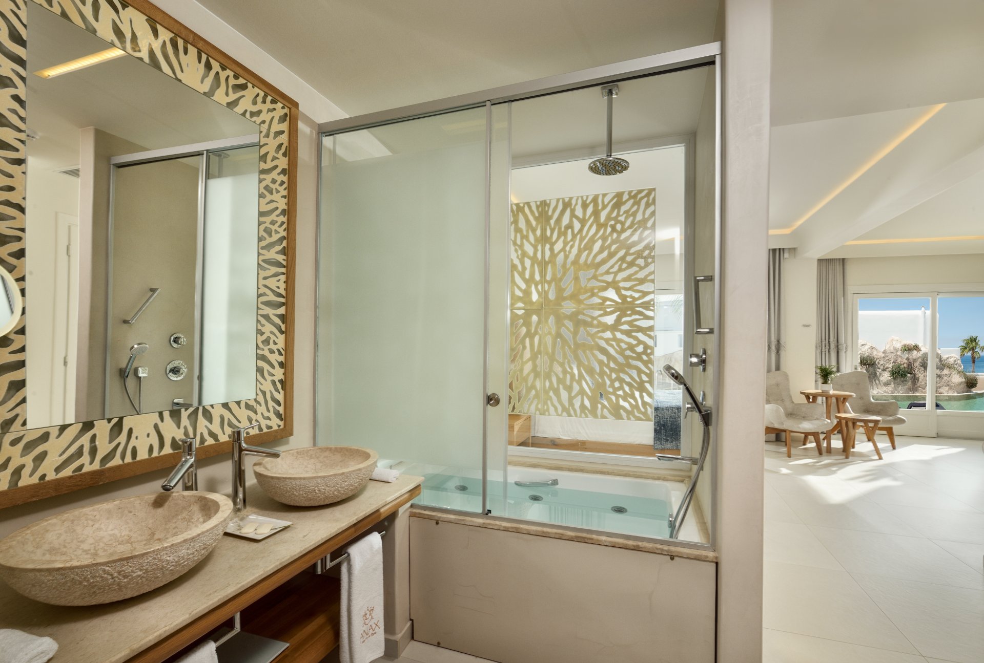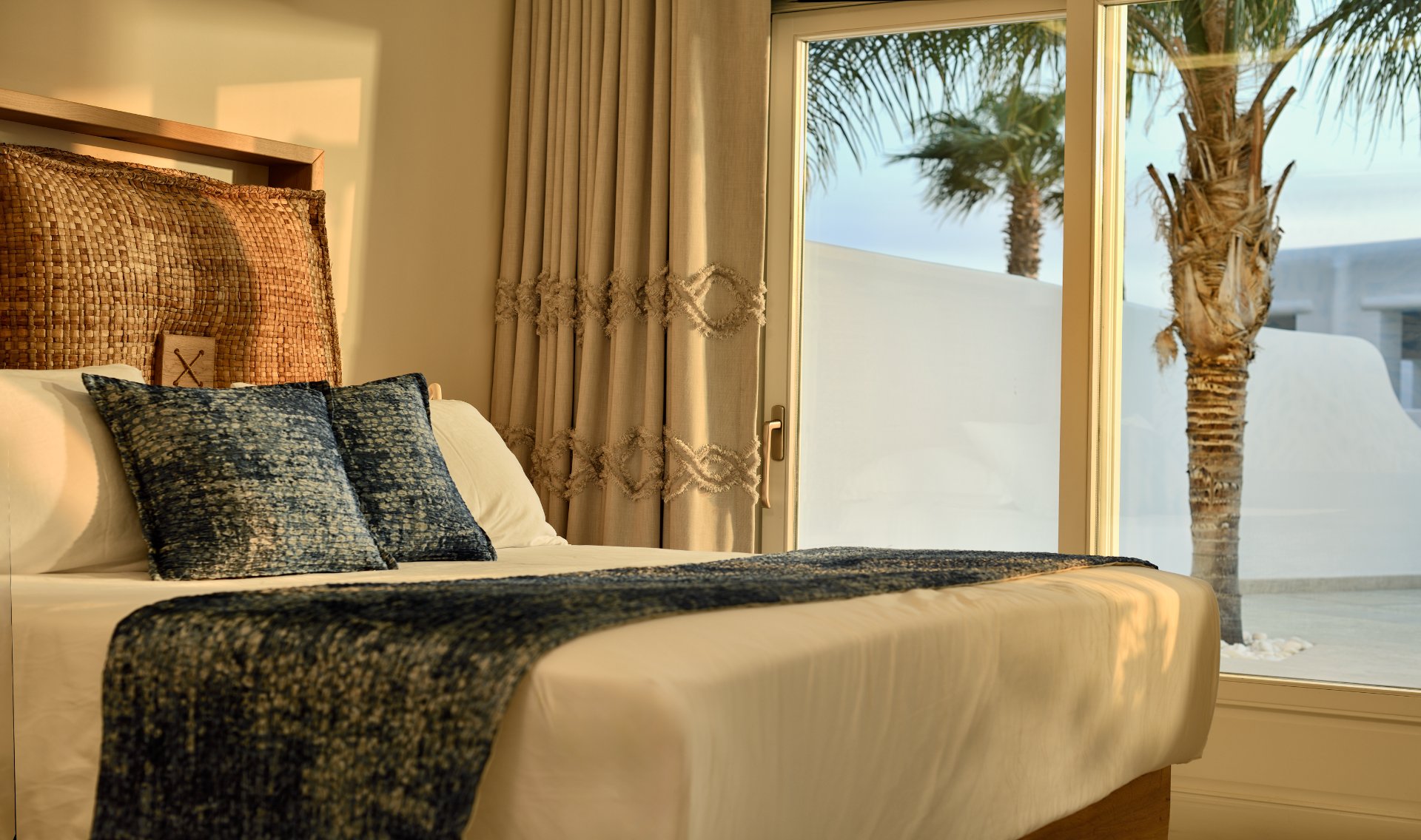 Delicate lines of Cycladic architecture, luxurious simplicity and high aesthetics are the main characteristics of the white serenity of the Exclusive Suite...